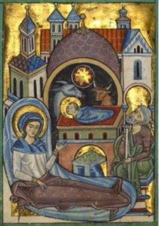 The ox and ass are two of the most ancient symbols that appear in nativity icons and sculptures. To the left is one of many Christmas (Nativity) paintings from the 1200s featuring the ox and ass.